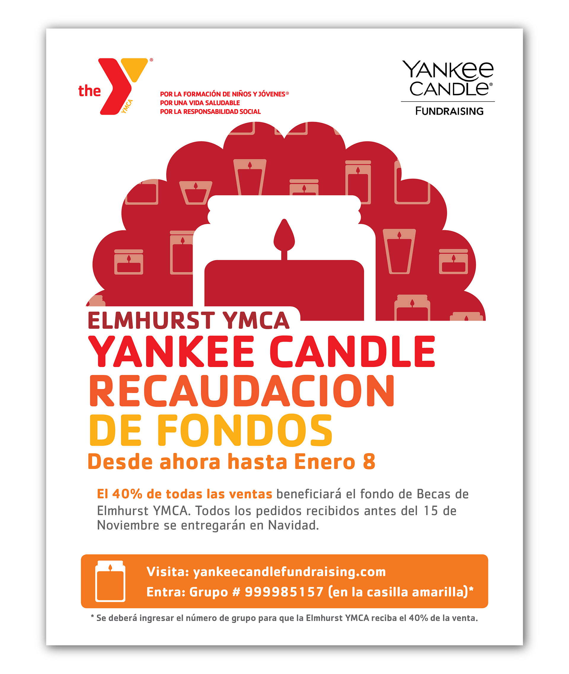 Flyer design for the Elmhurst YMCA Yankee Candle Fundraiser